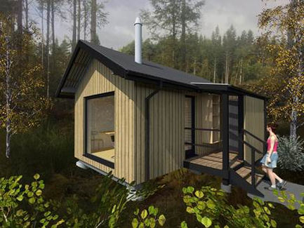 The Cabins will provide off-grid tourist accommodation in bespoke cabins built using timber from larch trees cleared from the community forest. Removing this larch is a first step towards restoring areas of native woodland in the community forest.